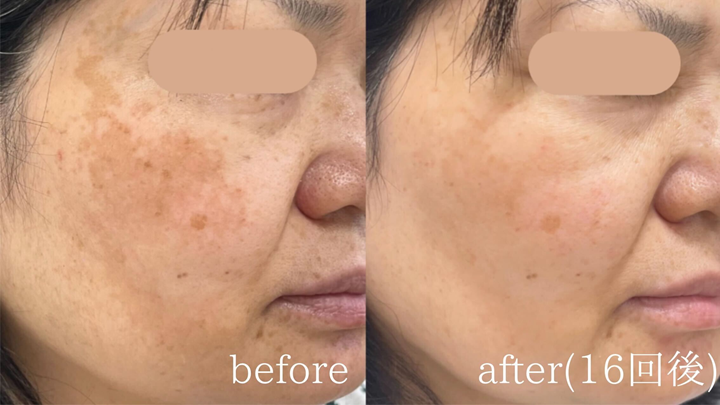 外側からのレーザーで悪化することがあるため従来のレーザーでは治療が不可能でしたが、近年「レーザートーニング」と呼ばれる色素沈着のリスクを低くすることを特徴としたレーザーで肝斑治療をすることが可能となってきました。