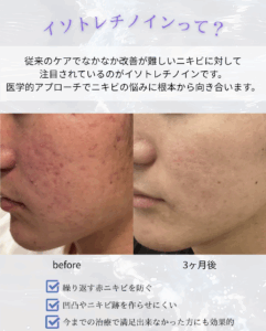 福岡でイソトレチノインは、特に重症ニキビに対して有効で、欧米ではニキビ治療に必要不可欠な薬剤として歴史があり、ニキビ治療の切り札とも言われております✨