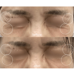 30代女性の”目元の表情ジワケア”にボトックスを少量ずつ注入。