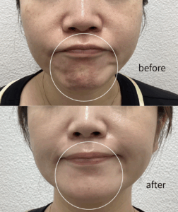 力を入れたときの顎のボコボコ感やシワが薄くなりました😊
