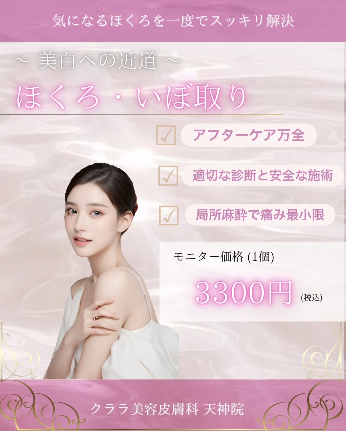 福岡・天神でほくろ除去・イボ除去・取り放題ならクララ美容皮膚科