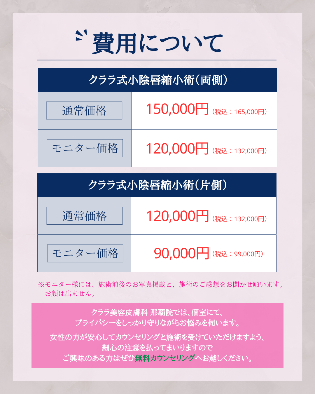 <クララ式小陰唇縮小術のご料金>