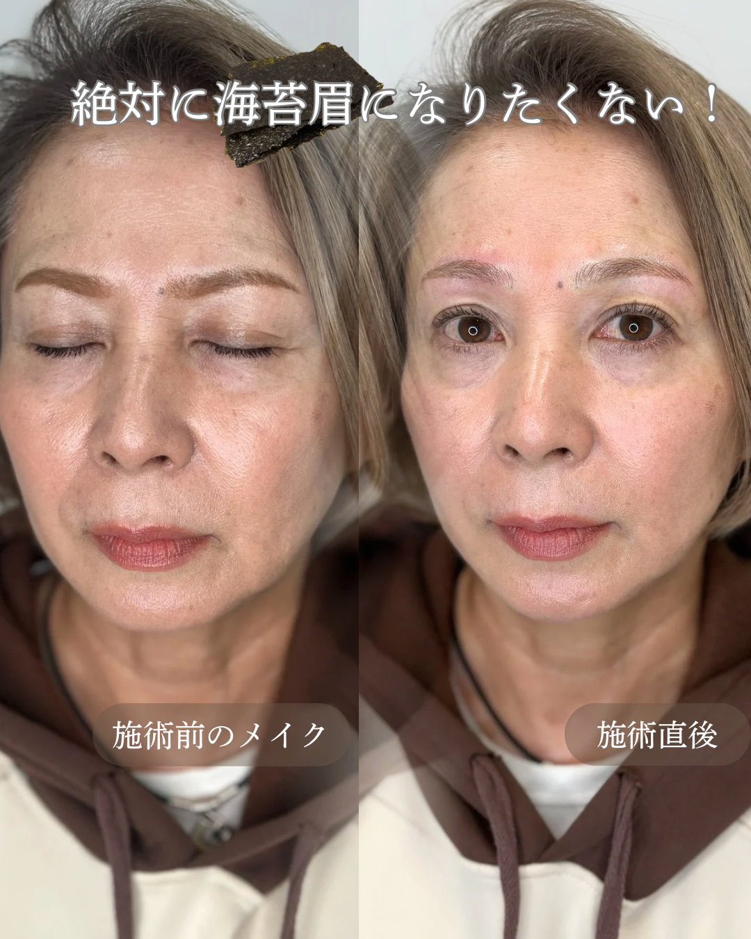 左:施術前(メイクあり)/右:施術直後(メイクなし)
