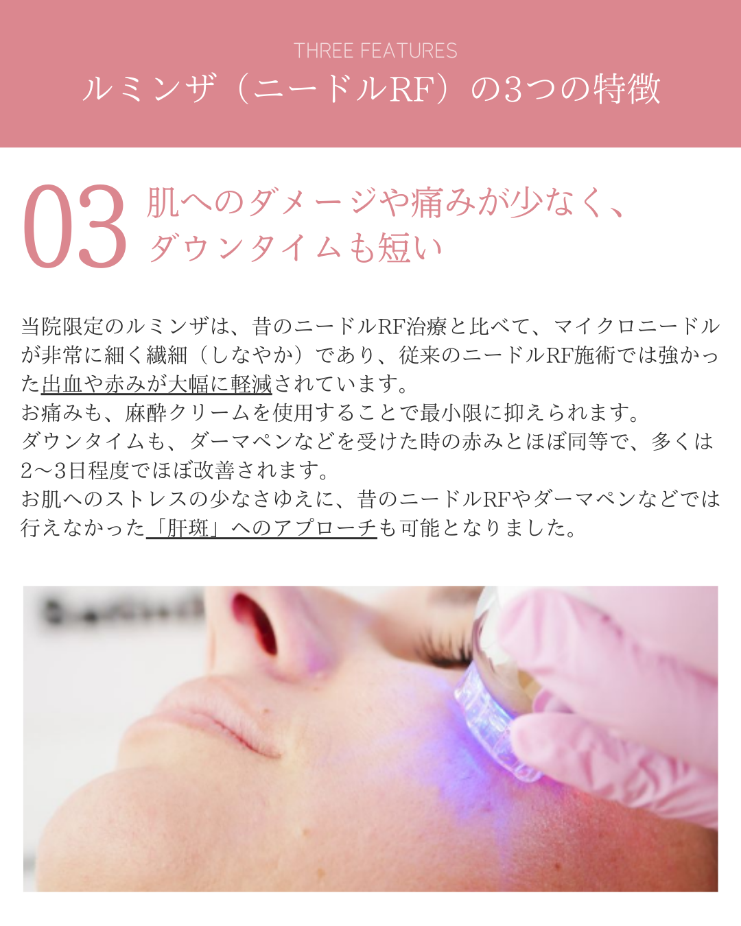 ルミンザは、まさしくお肌を新たに作り変えようという試みそのものであり、それを一気にやり遂げるべく【強力&安全】な技術が結晶化した治療です🏥