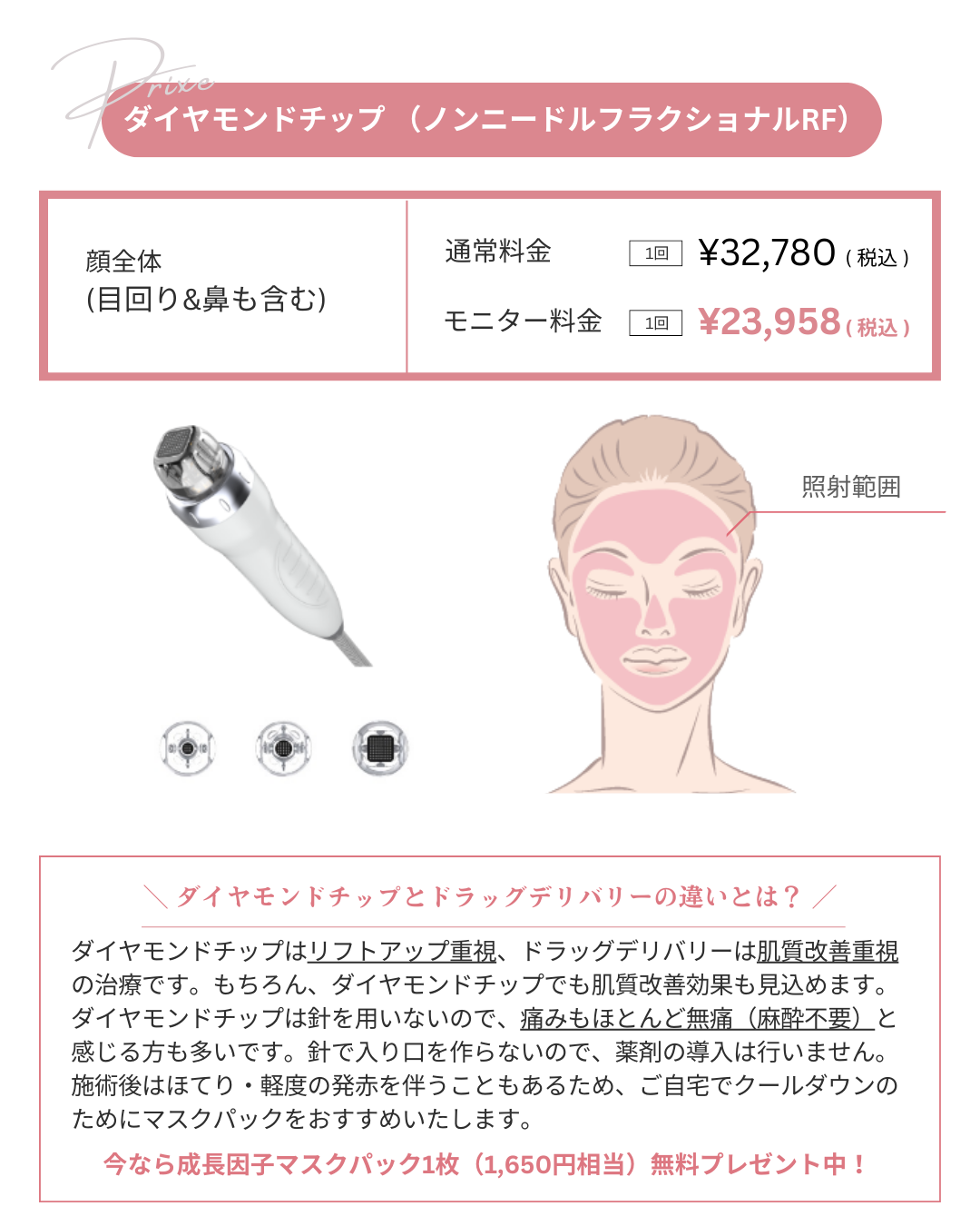 ◎ダイヤモンドチップ(リフトアップ特化モード,全顔ノンニードルフラクショナルRF)