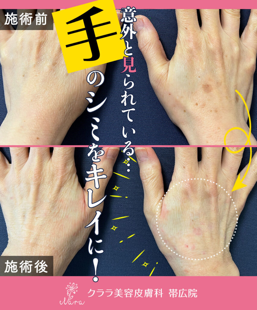 当院の新メニュー、手の甲のシミのピコスポット取り放題が人気です 👏