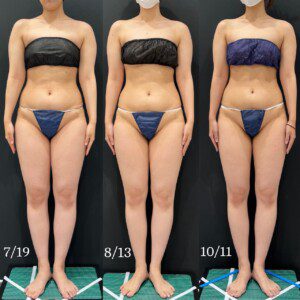 約3か月間、マンジャロと痩身治療を組み合わせて実施した、モニター様の症例をご紹介します。