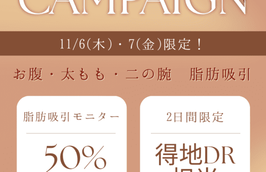 2025.11.02【11月6日(木)・7日(金)限定】 脂肪吸引モニター《50%OFF》募集! -