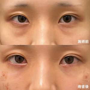 当院ではクマ取り+脂肪注入直後でとてもきれいな仕上がり(画像参照)