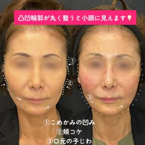 頬こけ・こめかみ・口元のヒアルロン酸注入で、