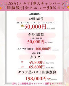✔︎最新脂肪吸引技術エルサ式脂肪吸引50パーセントoffキャンペーン🪠