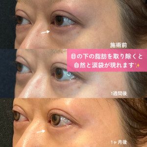 腫れも完全に引き、目の下の膨らみが取れてクマも改善し、より若々しい印象に仕上がりました。