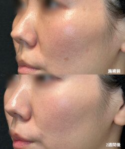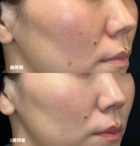 効果には個人差があります。施術することで、やけど、発赤、熱感、痒み、痛み、乾燥、シミが一時的に濃くなる、膨隆、表皮剥離、水疱形成、色素沈着や色素脱失、肝斑の悪化、潜在性肝斑の惹起、瘢痕が生じることがあります。